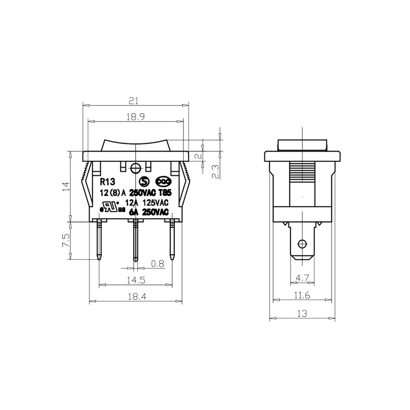 Shanghai Qijia Electronics Co., Ltd. Domů / Produkty / Kolébkový spínač / Kolébkový spínač R13 / Kolébkový spínač R13-13
